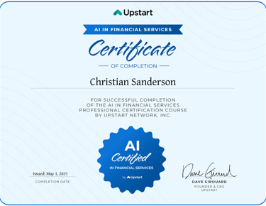Here are some of my most recent certifications and qualifications in AI