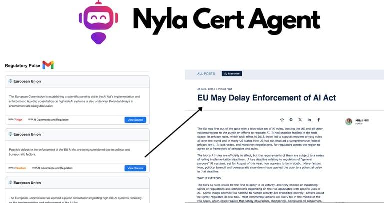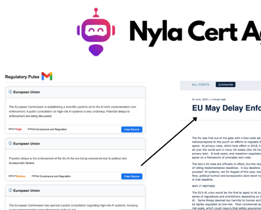 The Nyla Cert Agent is a streamlined, AI-assisted tool I built to track developments in the AI assurance space. It scans the latest news, LinkedIn posts, and updates from platforms like X (formerly Twitter), focusing on activity from leading players in the field—including major cloud providers and the "Big Four" in AI assurance. Nyla uses a hybrid approach, combining lightweight AI filtering with Google’s Custom Search Engine to surface high-relevance updates from the past 48 hours. Curated insights are delivered straight to my inbox, keeping me informed on competitor movements, policy shifts, and emerging trends in responsible AI.