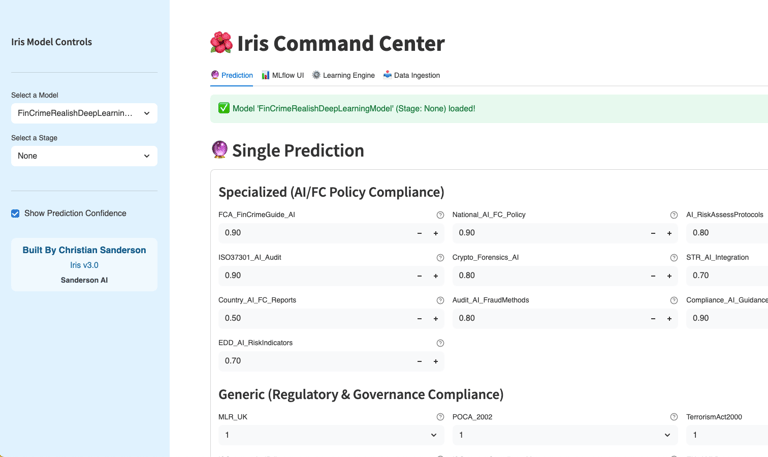 This is my own ML Model that was built for the demo Application Assure AI - This was a sample 50 rule set model with 10 specialised and 40 Generic regulation and policy- with a great 0.99 training data pass rate, Tech: MLflow engine- self hosted VPS-server- Python coded with 2 other stacks and generated with gemini and chat-gpt agents.